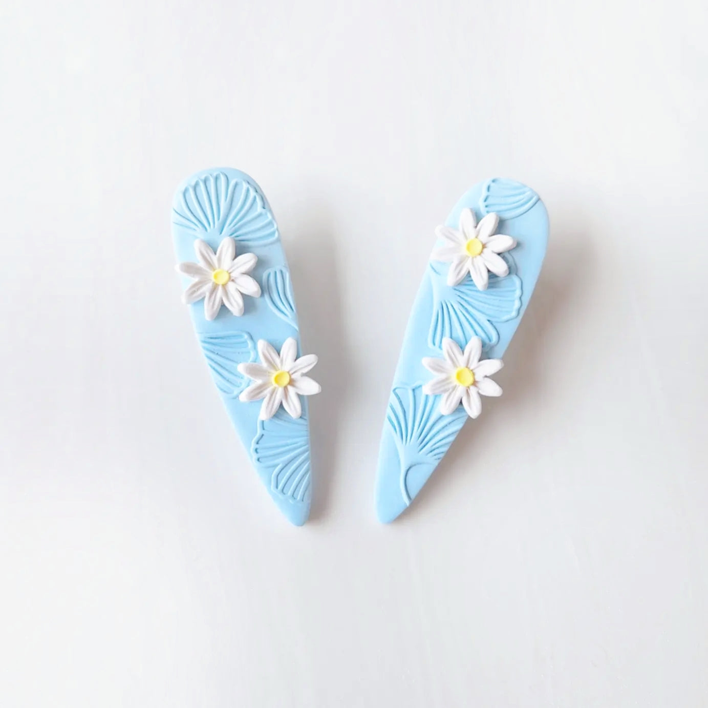 These statement clips are made from lightweight polymer clay. They are individually handmade to order so may differ slightly from the photo and may take up to 7 working days before shipping.