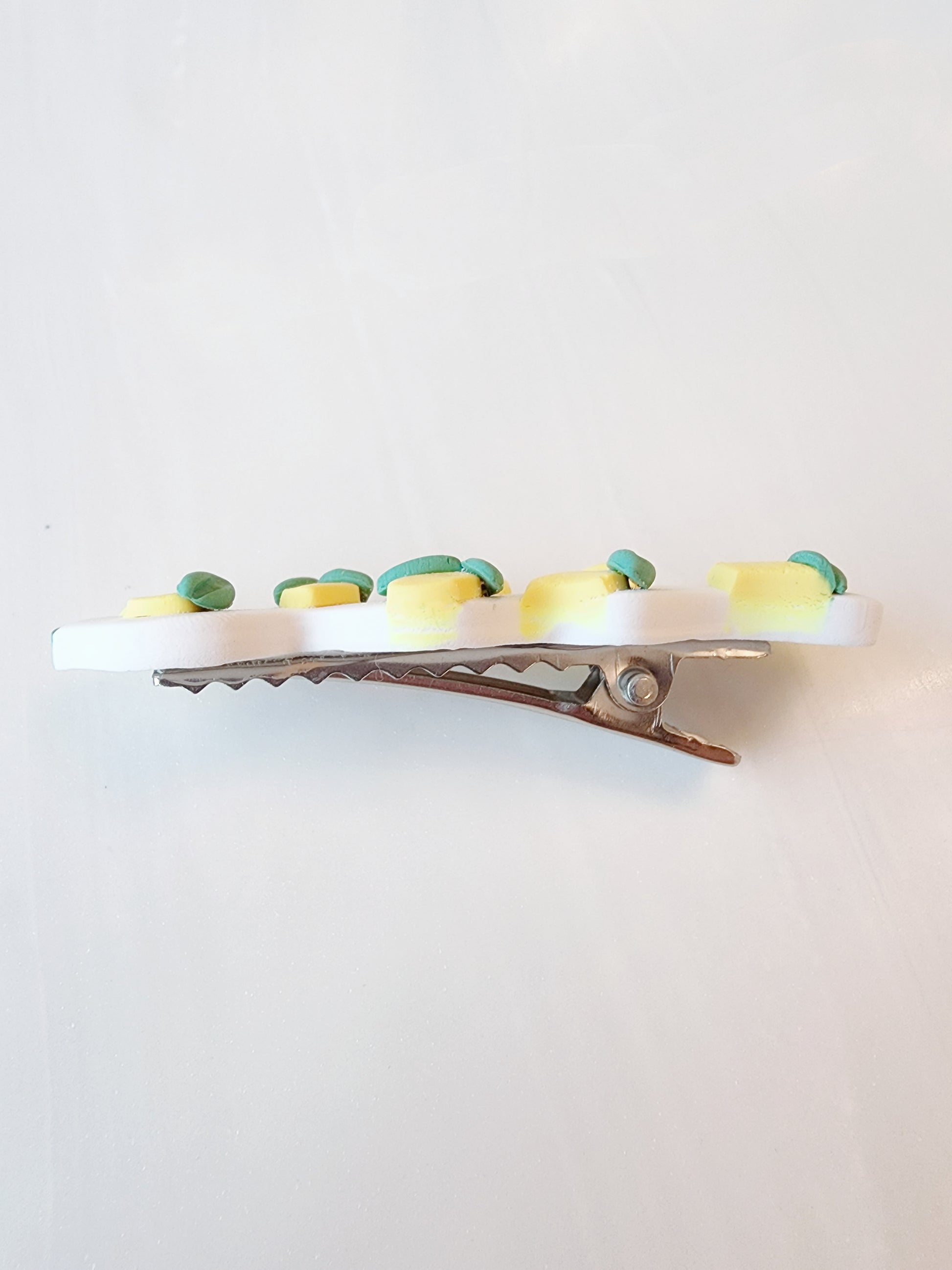 These statement clips are made from lightweight polymer clay. They are individually handmade to order so may differ slightly from the photo and may take up to 7 working days before shipping